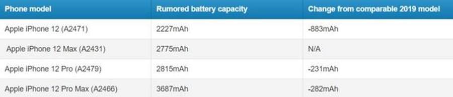 好像是这样的,根据此前韩国认证机构泄露的数据显示,5.4英寸的iPhone 12为2227mAh,6.1英寸的iPhone 12 Max为2775mAh,6.1英寸的iPhone 12 Pro为2815mAh,6.7英寸的iPhone 12 Pro Max为2687mAh。而同样6.1英寸屏幕大小的iphone 11,配备了3110mAh电池,缩水幅度达到近30%,不知苹果对于A14+IOS 14的续航表现有几成把握?