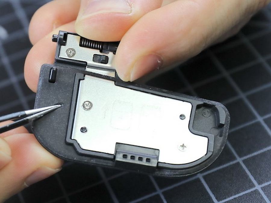 EOS R5机身大面积被包上胶皮,必须先行移除,才能拆机