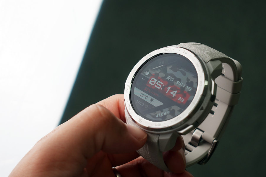 首先评测更为高端的荣耀手表GS Pro。荣耀智能手表的定位就是专业运动,而这一代GS Pro多了一个“户外”的标签。从设计到功能,荣耀手表GS Pro都是一款户外元素浓重的智能运动手表。比较突出的卖点是25天超长续航,14项军规品质以及100余种运动模式,同时还支持专业的健康管理功能。从功能来看它真正的竞品并非其他手机厂商推出的智能手表,而是诸如佳明等专业的户外运动手表。