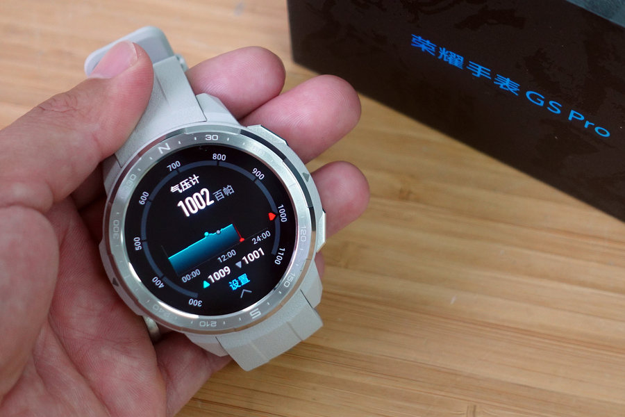 一些其他功能,荣耀手表GS Pro支持潮汐推送、日出日落时间、月相信息、指南针,这些都是户外旅行爱好者所关注的功能。此外还支持门禁卡、遥控手机拍照,也是比较人性化的功能。这款手表的售价为1599元,先发预售期间还能优惠100元。如果你关注专业户外运动手表,应该能知道定价普遍在两三千元、甚至四五千元,荣耀的定价还是很便宜的。