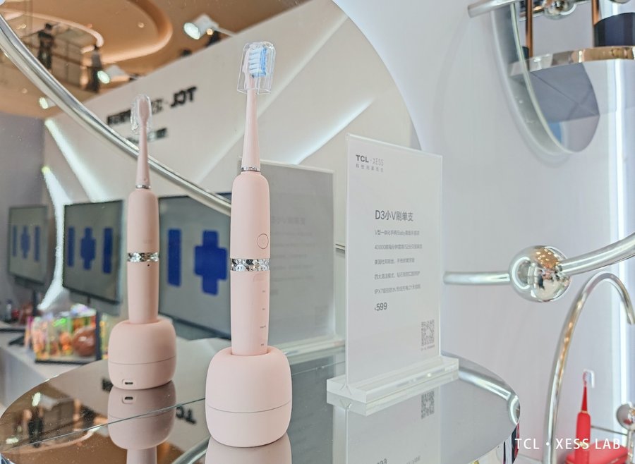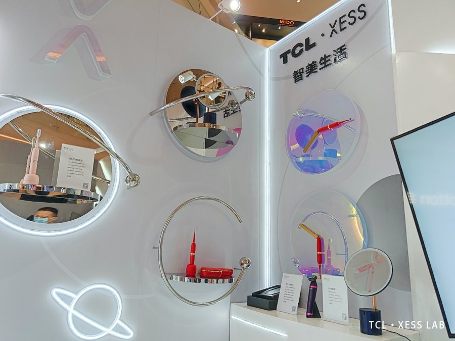 在TCL·XESS LAB的“智美生活”专区,XESS还展出了由声波电动牙刷、美容仪以及美妆镜三大产品组成 “仙女三件套”。据悉,XESS“仙女三件套”均由XESS产品团队设计,不仅造型独特、辨识度高,且充分考虑人体工学,以弧面设计及亲肤工艺为用户带来舒适手感。