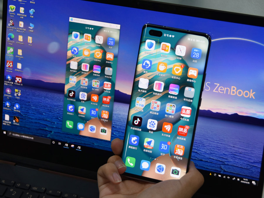 开启手机镜像模式,手机的屏幕便会显示在笔记本屏幕上,用户可以利用鼠标,在电脑上对手机进行文件互传等操作。
