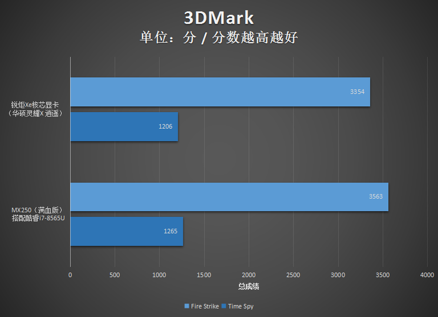 根据3DMark的成绩来看,这款锐炬Xe核芯显卡的游戏性能已经很接近满血版的GeForce MX250独立显卡了。不得不说,全新锐炬Xe核芯显卡的性能同样令人欣喜。