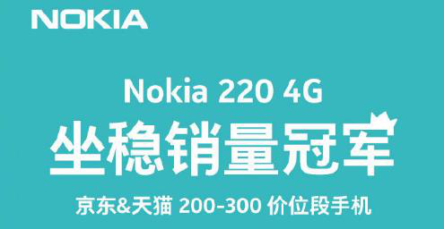 10月10日消息,昨日,诺基亚官微宣布今年年初上市的诺基亚220 4G成为200-300元价位的销量冠军。在今年5.7-9.30期间,同价位手机中,诺基亚220 4G占据京东55%销量,天猫47%销量。