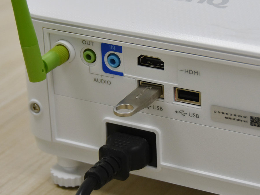 这款智能投影仪支持U盘功能,插上U盘就能用。用户可以轻松将自己U盘里的文件,例如图片、视频、Word、PPT等等等等,在开会时进行投影,相当方便。