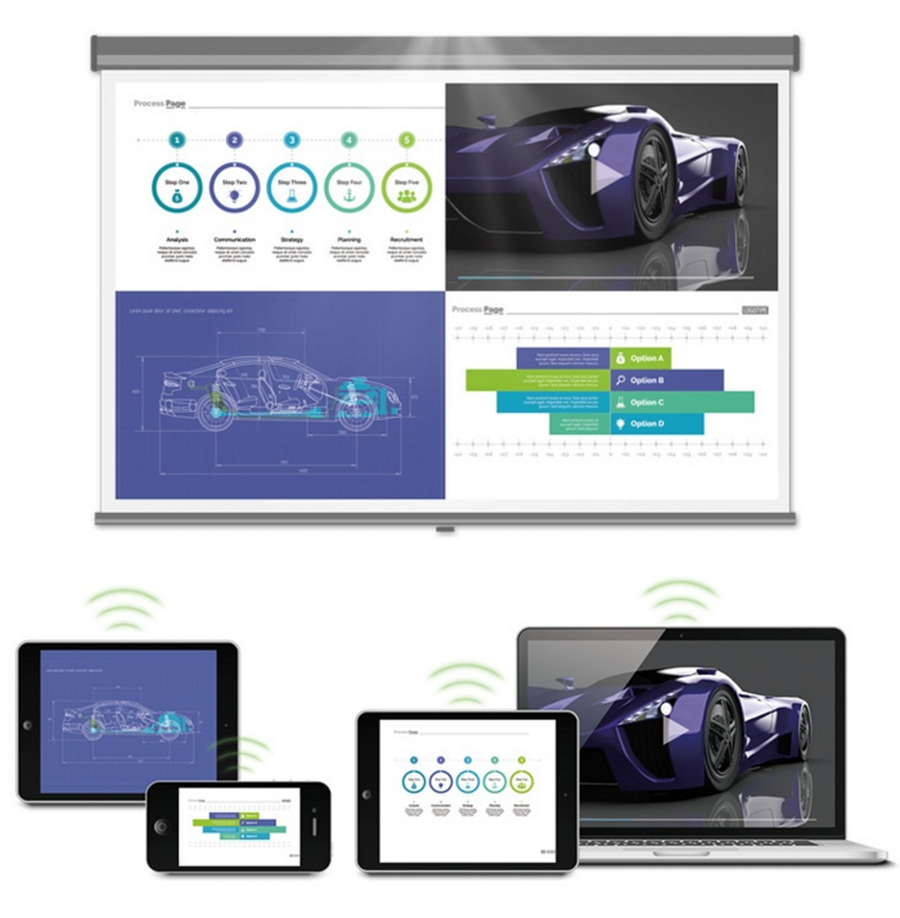采用16:10影像投射、具备WUXGA (1920x1200)级别的超高清分辨率是明基E592智能投影仪的一大优势。相比主流的1080p投影仪,明基的这款智能投影仪能够多投影出约11%的画面内容,也就是说它投影出来的画面,高度会更高一些,能够将word、pdf等文件显示更多的行数,让参会人员观看到更多的内容信息。无论是打开网页查找资料,抑或是使用各种办公软件办公,都无需频繁滚动鼠标,目光皆可至。