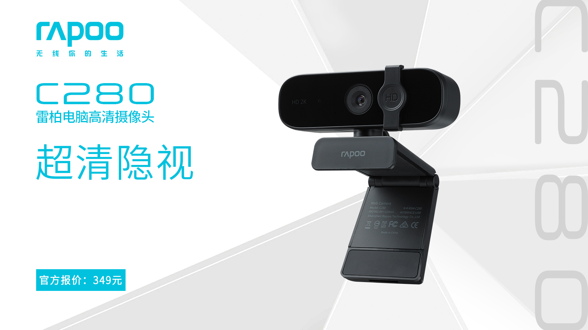 C280电脑高清摄像头是雷柏摄像头系列的又一款重磅产品,拥有2K自定对焦的高清影像,85°超广角的视野广阔镜头,带有保护隐私的摄像头保护盖,双重的降噪麦克风,360°的水平旋转镜头,可调式的硅胶底座,即插即用,无需软件,即可实现高质量的直播,开启你的直播狂潮。现上市诚意价仅需349元,感兴趣的朋友前往不要错过。