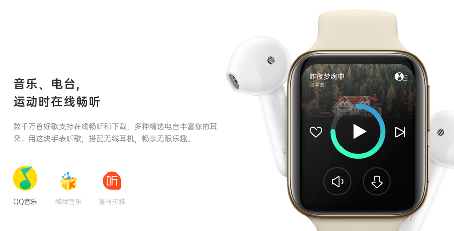 除了上面的通讯功能,智能手表还可以支持离线音乐播放,提前把音乐存储到智能手表上,不需要手机在身边也能播放音乐,脱离手机仍旧能保持这些常用功能。对于经常运动的用户来说, 可以脱离手机使用非常贴心。