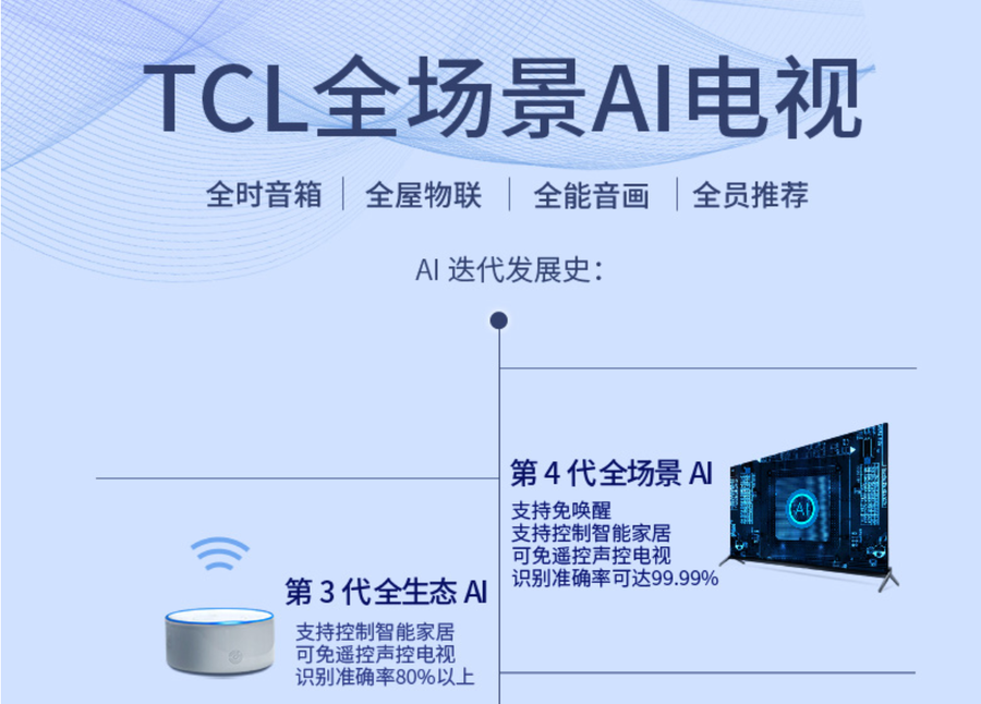 此外,TCL也在积极推进AI×IoT战略布局,打造出一套以智能电视为核心、更具吸引力的智能生态中心,覆盖更广的家庭应用场景,增强用户粘性。
