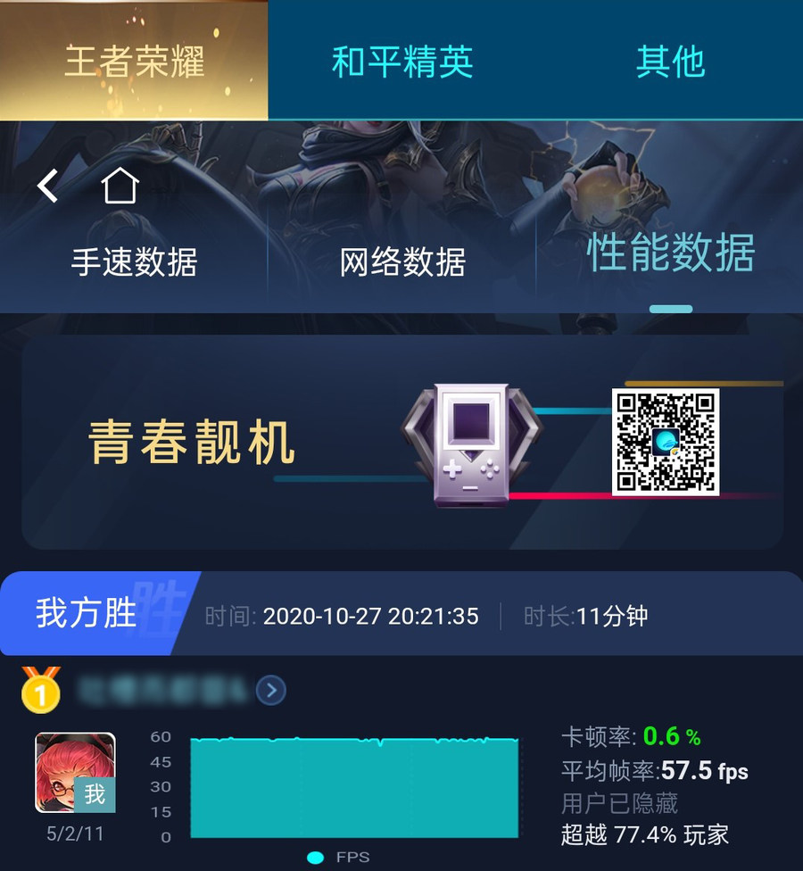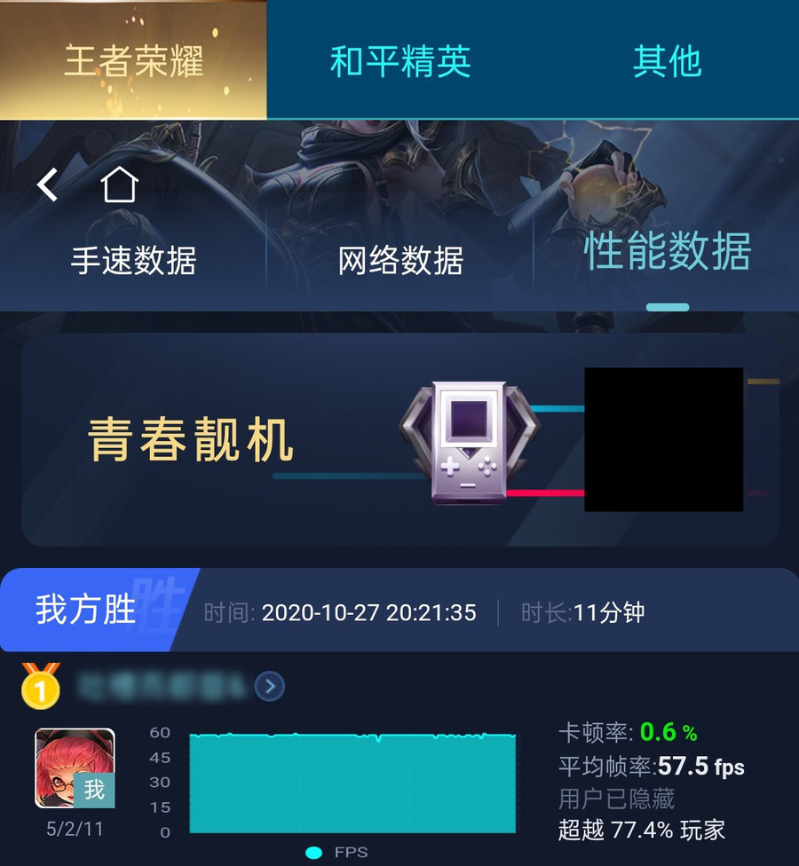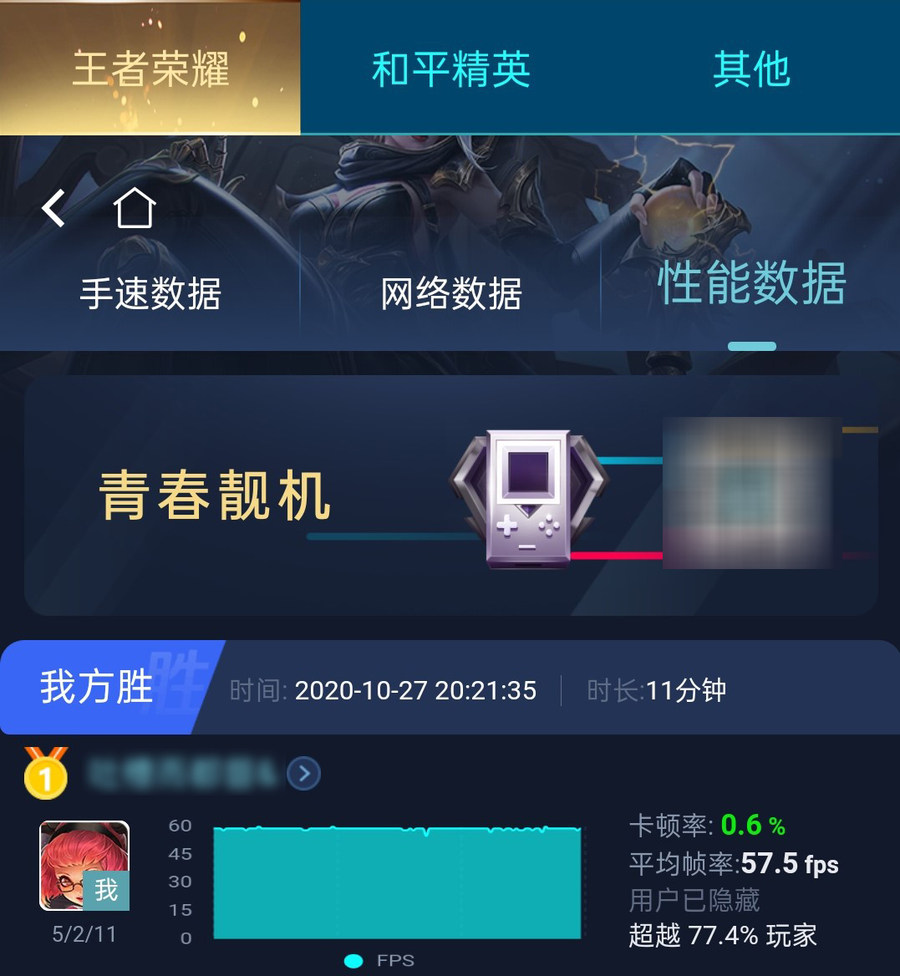 在《王者荣耀》的测试中,除了分辨率暂时没办法开到超高外,其余特效均为全开。游戏帧率变化如上图,游戏平均帧率达到57.5帧,波动比较小,即使是复杂的多人团战场景也能保持很好的流畅度。OPPO K7x应对《王者荣耀》这类游戏无压力,喜欢玩这款游戏的朋友不用担心。