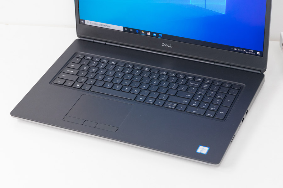 戴尔Precision 7750工作站C面为类肤材质,触感舒适。手托部分空间充足,可以起到比较好的承托作用。键盘的按键行程为1.6mm,按键反馈清晰,打字体验还不错,长时间打字输入也会比较轻松。右侧保留了数字键盘区域,对于经常需要输入数字的用户很友好。