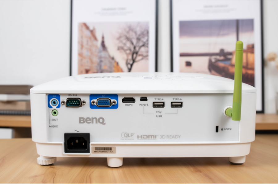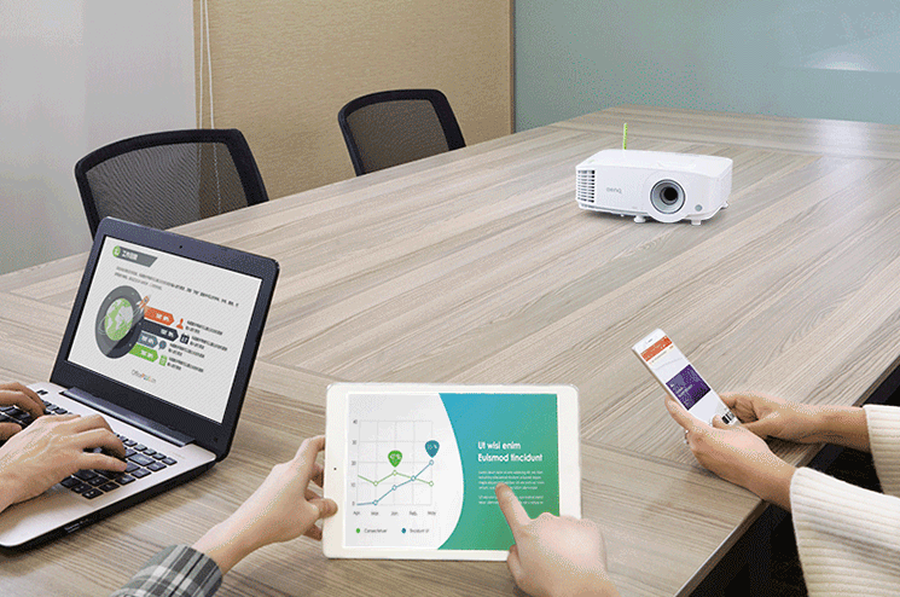 明基E580智能投影仪的投影系统非常智能。它自带热点,通过小绿尾天线可以直接无线连接投屏。并且搭载有定制化的安卓操作系统,除了支持传统有线投屏以外,还支持电脑和手机的无线投屏,可以满足多样化的办公投屏需求。