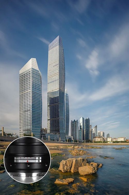 镜头的机械机构全部采用金属部件,确保了镜头的组装精度和耐用性,镜头具备±11mm移轴机构,同时具有360°旋转机构,每15°一个限位。这支FF S 15mm F4.5 W-Dreamer镜头具备的±11mm的镜头偏移,让建筑物不会因为拍摄距离近、俯仰角度大或镜头焦距广而产生的近大远小的透视变化。同时该镜头转接应用在44×33画幅机身上,移动量大于±8mm才会出现遮挡,扩展了应用,让中画幅玩家也可以体验一定的移轴效果。 镜头延续了老蛙镜头一贯优异的畸变控制能力,畸变率近似于“零”。这对于建筑、风光等题材的摄影来说非常有帮助,大大减轻了后期校正的负担。