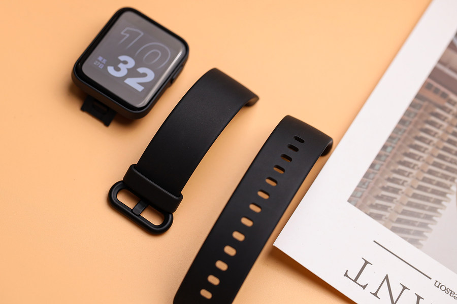 虽然Redmi Watch小方屏并不是一款定位于旗舰高端的智能手表,但在外观上也依然十分有特色。设计方面,Redmi Watch小方屏定位为“BASIC”型产品,方形设计和方便的可更换表带设计使之具备智能手表最经典的外形设计。整个手表的净重只有35g,包含表体22g和表达13g,把手表戴在手上也十分轻盈,尤其是在冬天穿着厚衣物时手腕基本感觉不要它的存在,搭配轻薄时尚的设计,适合多种场合佩戴。