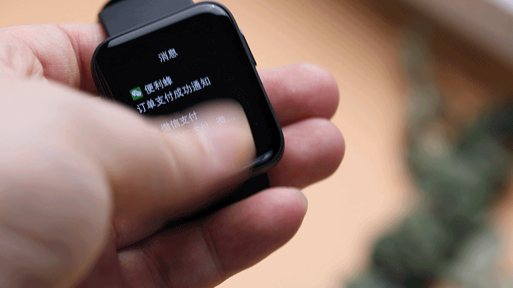 在操作和使用这款Redmi Watch小方屏智能手表的过程中,让我感觉非常顺畅,手表采用的是上下左右滑动的形式进行功能切换,上滑屏幕可对手表进行功能的快速设置,而下滑屏幕可查看手机上的通知消息,左右滑动则可在天气、心率、运动等功能之间切换。从上面的GIF动图可以看到,无论从什么方向滑动Redmi Watch小方屏都十分的流畅顺滑,完全没有卡顿的情况出现。