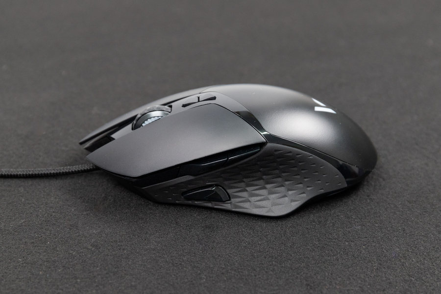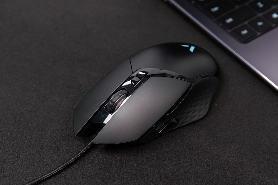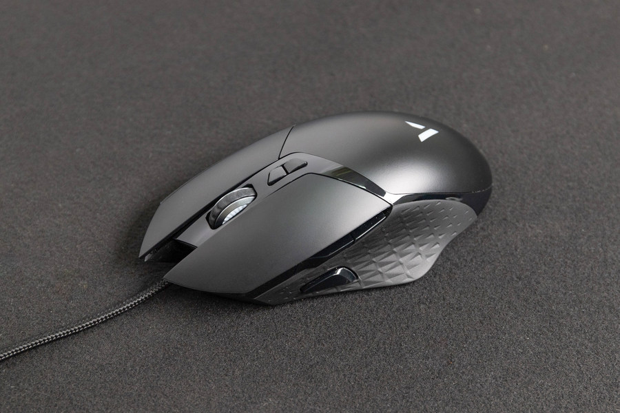 鼠标左右侧裙都为内凹设计,都选择了带有纹理的软胶材质,具有透气和排汗的效果,也能提升摩擦力,不易手滑。左侧裙凸出的地方可以给大拇指提供承托,降低长时间使用的疲劳感。