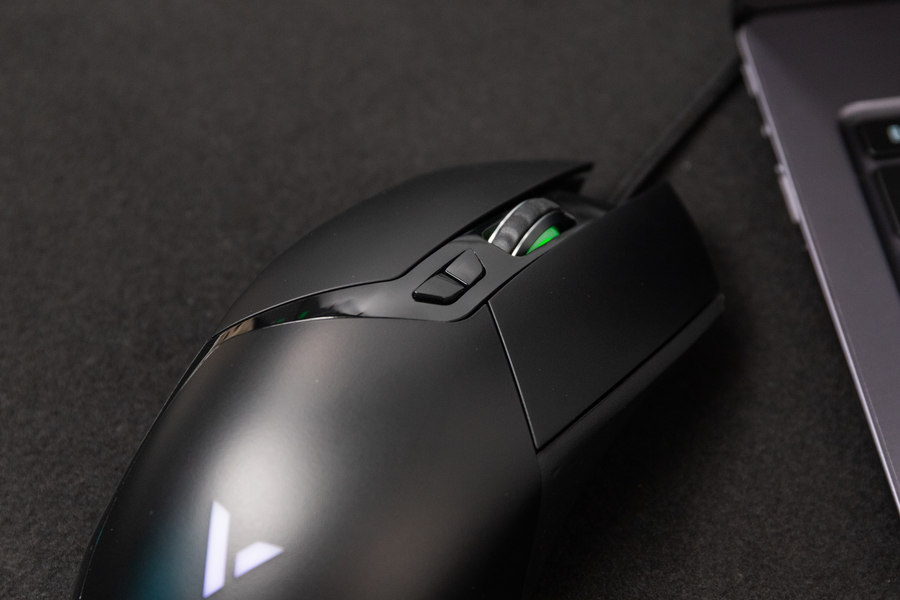 雷柏VT30幻彩RGB游戏鼠标还在滚轮附近配备了两个DPI调节按键,可以直接调节DPI,不用来回切换,方便很多。