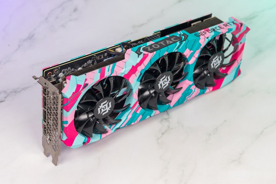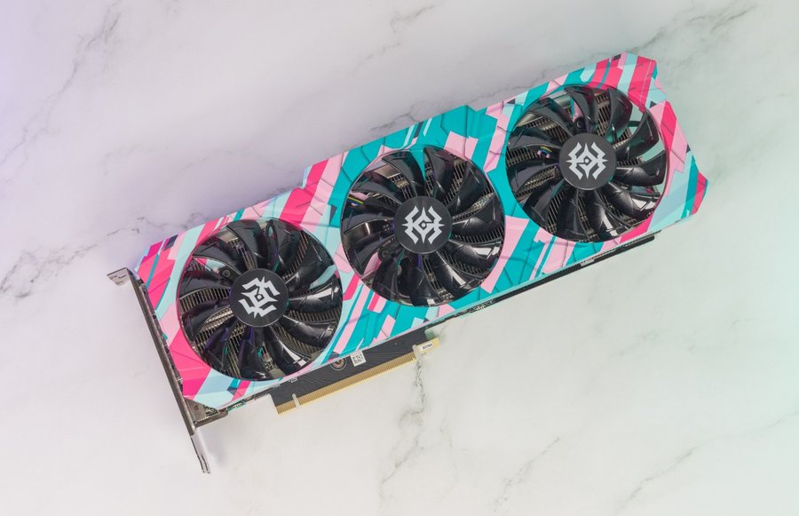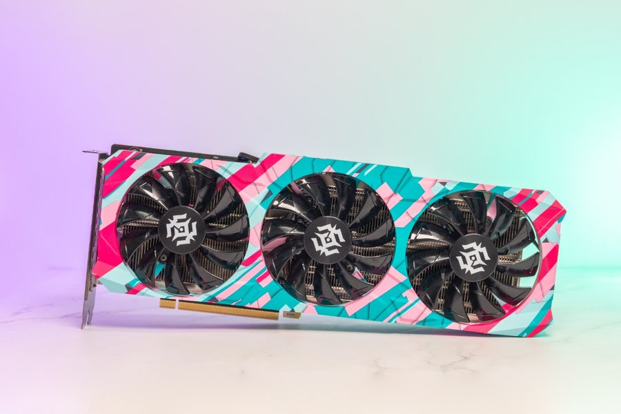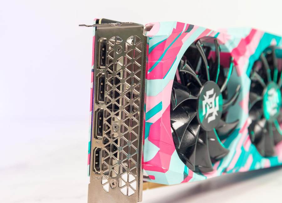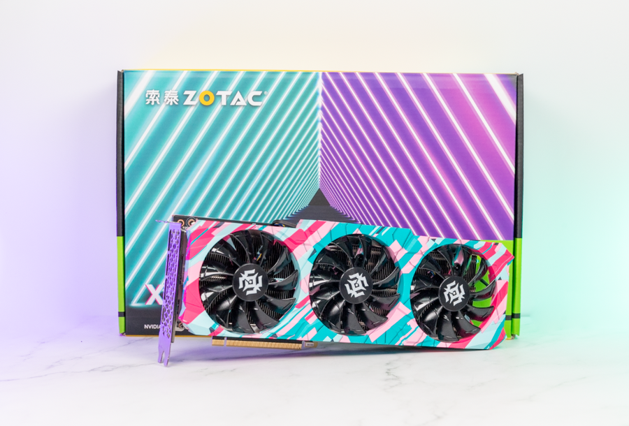 这次测试的型号是索泰的RTX 3060Ti X-GAMING OC,该系列显卡在外观上突破了以往的设计风格,采用了大胆的撞色设计,青与粉的搭配带来了耳目一新的观感。