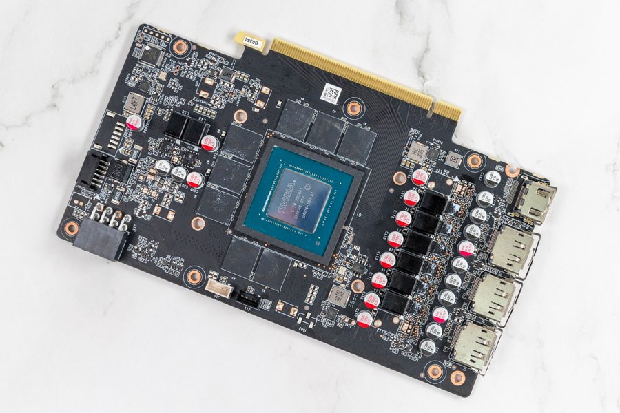PCB部分采用6+2相供电设计,核心供电mos管是来自万国半导体的BLN0,显存供电mos为大中积体的7342EK。