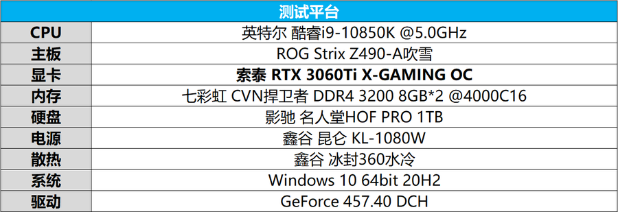 为尽可能减少其它硬件因素的干扰,我们将i9-10850K超频至5G,内存超频至双通道4000MHz C16。软件方面,系统版本升级至较新,驱动为NVIDIA内部测试版。