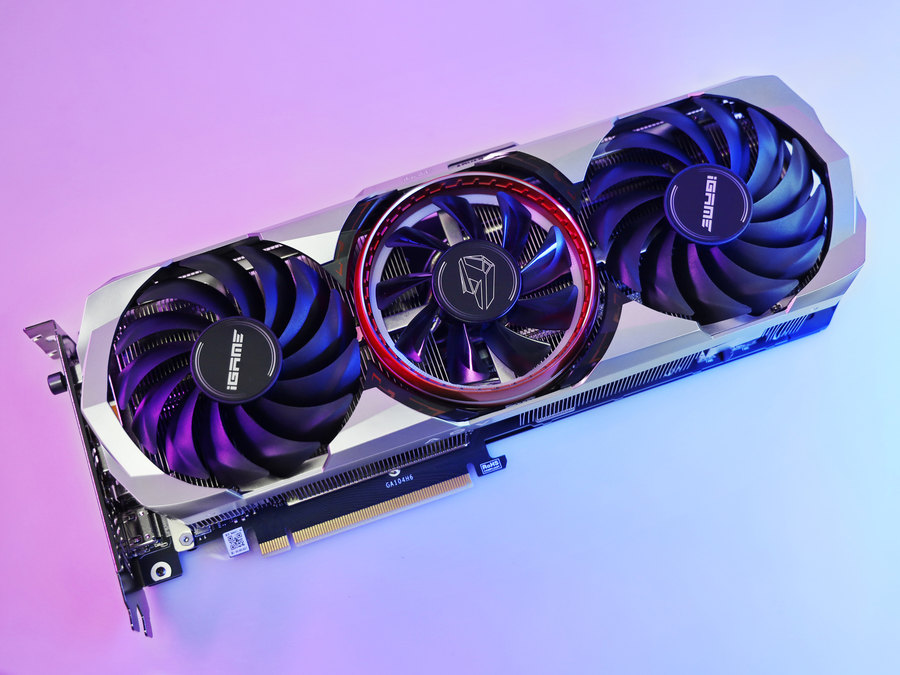 本文的主角iGame GeForce RTX 3060 Ti Advanced OC就是首批上市的RTX 3060 Ti显卡之一,它颜值性能兼备,令玩家们不容错过!在外观方面,iGame的这款显卡延续了iGame Advanced系列近年来一直沿用的未来工业风格,标志性的大红圈设计,如同电影《环太平洋》里面机甲战士的聚能炉,让这款显卡在视觉上给人一种能量满满、战力十足的感觉!