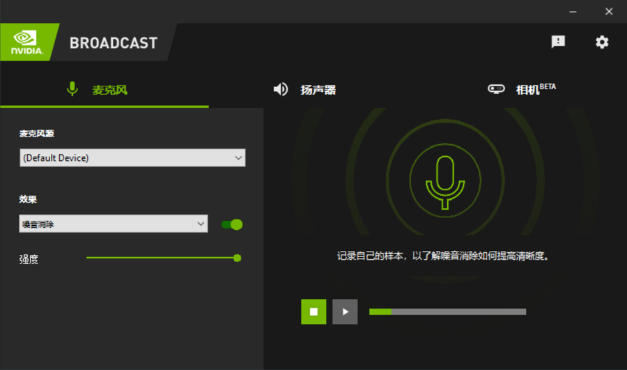 噪音消除功能相信大家都非常耳熟,许多专业的游戏耳机都可以办到。但现在只要拥有一张GeForce显卡即可免费获得这项功能,它可以消除麦克风输入中的背景噪音、环境噪音等等。无论是夏天的风扇声、冬天的寒风声还是领居家的装修声都可以消除、隔绝,甚至机械键盘的敲击声也在AI噪音消除的范畴。该功能可在NVIDIA Broadcast软件的“麦克风”页面中,选择“效果”选框的“噪音消除”实现,主播也可以根据自身喜好选择消除噪音的强度!
