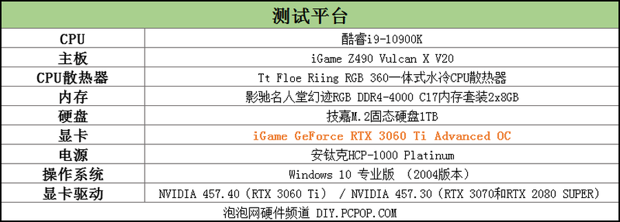 为了充分展现iGame GeForce RTX 3060 Ti Advanced OC显卡的性能,笔者组建了一套性能出色的酷睿i9测试平台。