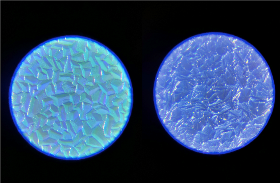 从微博博主@肥威曝光的后盖显微镜结构图看,Reno5系列后盖晶体更大更闪亮,并且在不同位置还有不一样的渐变色彩效果。Reno5系列后盖工艺升级后,实际机身效果应该会更加闪亮,机身触感也会有提升。