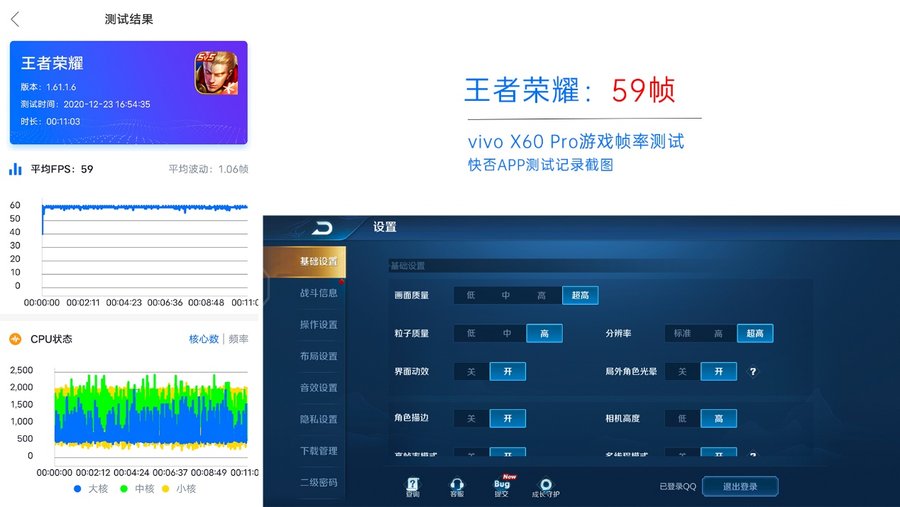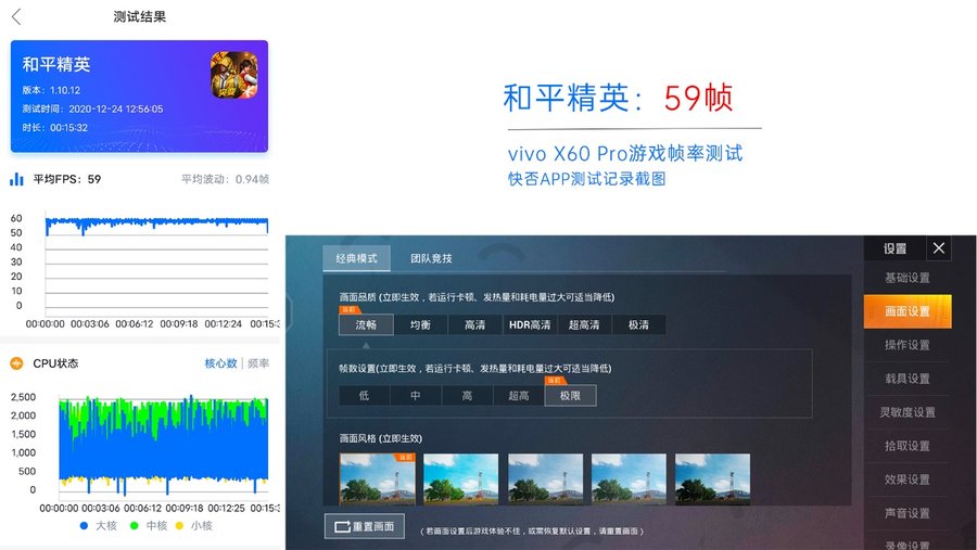 vivo X60 Pro还支持功能丰富的游戏助手,可通过画中画的方式回复微信、QQ,屏蔽通知,倒计时浮窗,开启鹰眼显示画质增强功能等,游戏细节体验更加出色。