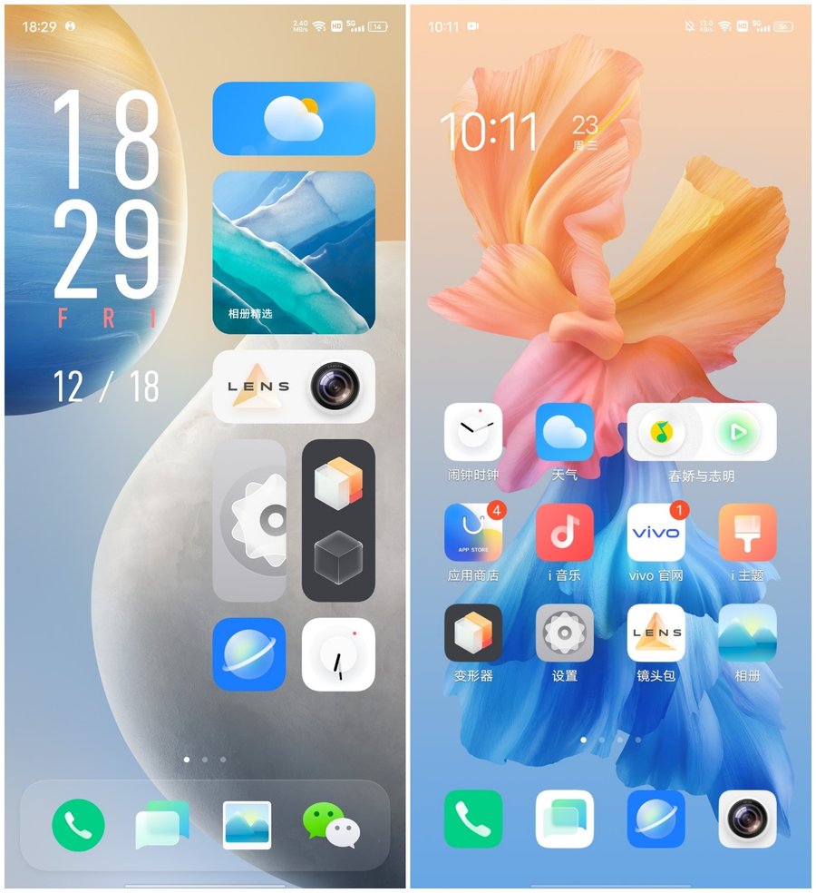 左侧为OriginOS新界面,右侧为普通界面