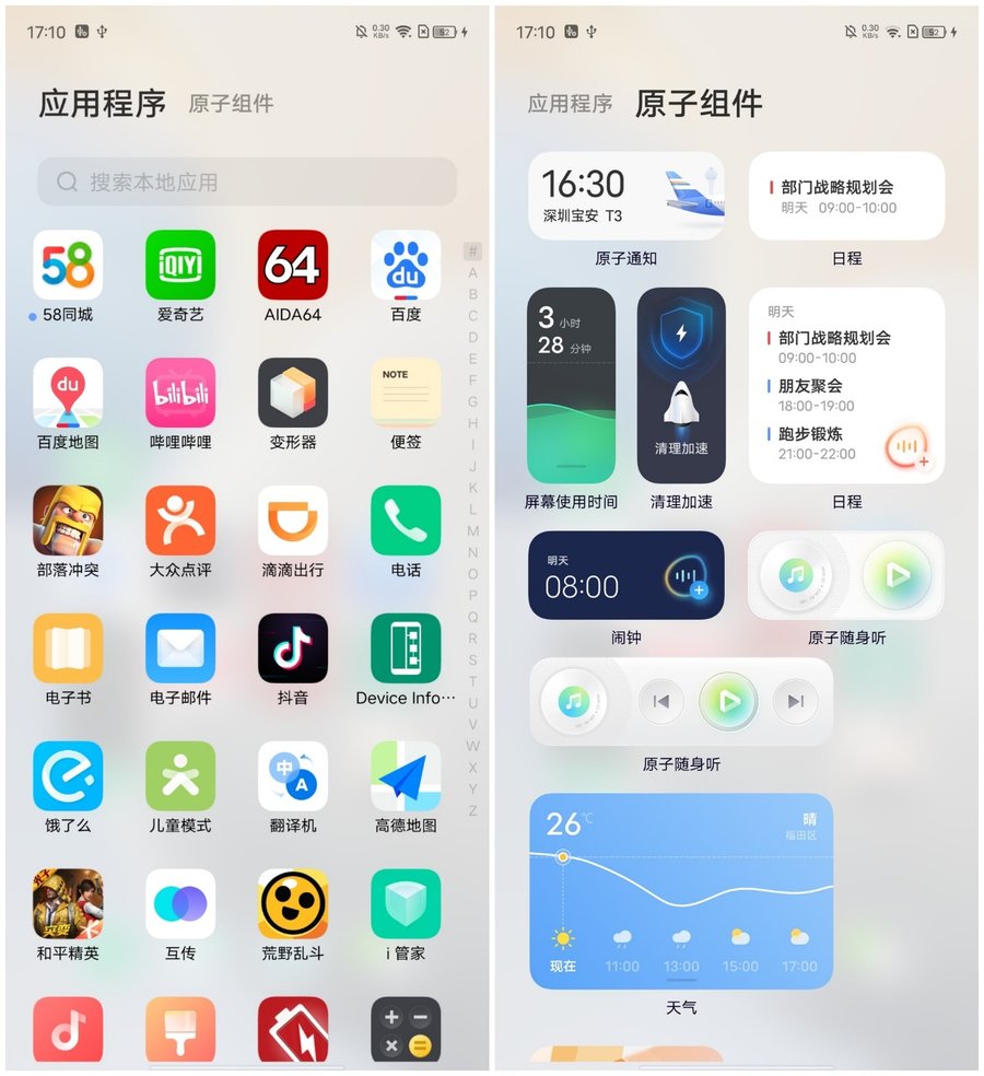 除了桌面图标可以调节,你还可以在桌面放置一些具有功能的原子组件,比如原子随身听、闹钟、原子通知等。通过这些原子组件,你可以直接在桌面上实现交互,提升操作效率。