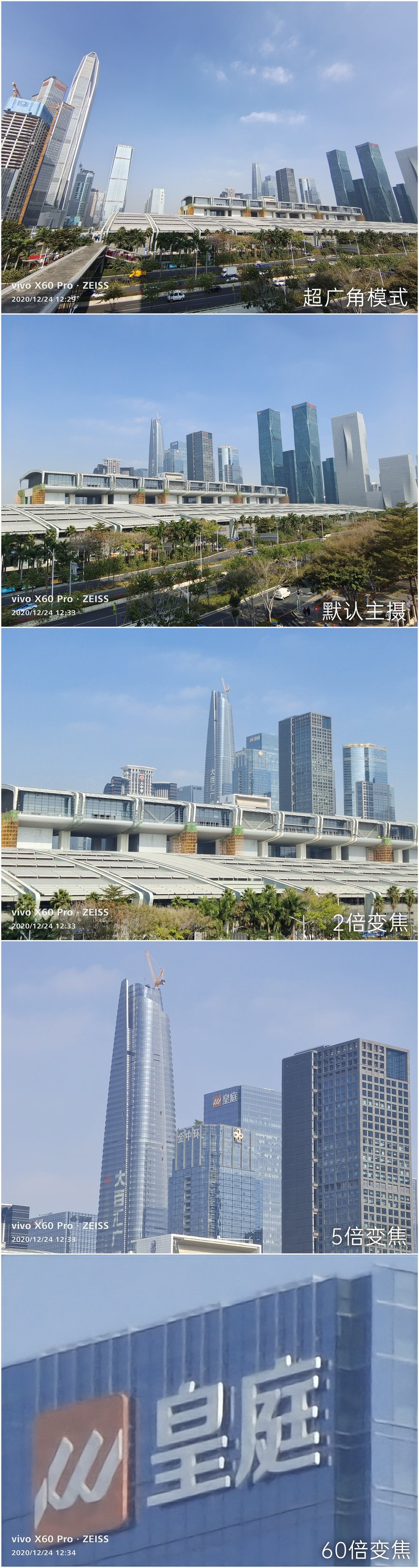 因为有2倍光学变焦镜头和5倍光学变焦镜头的加持,在2倍、5倍变焦时都能得到高质量的照片。即使到60倍变焦,画面还能够保留不错的细节。不同焦段的成像颜色比较接近,看起来更加自然,不会有很大的跳跃感。
