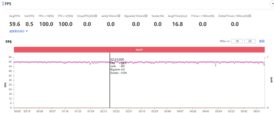 使用iQOO 7运行《和平精英》,手机的平均帧率为59.6FPS。