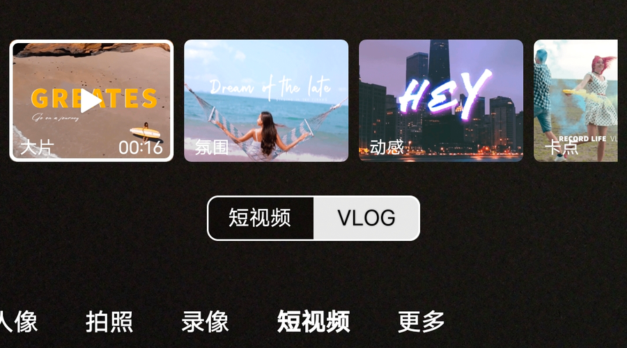 过卡点音乐、转场特效和片头字幕的智能结合,用户只需要按住拍照键分段拍摄几个视频即可。