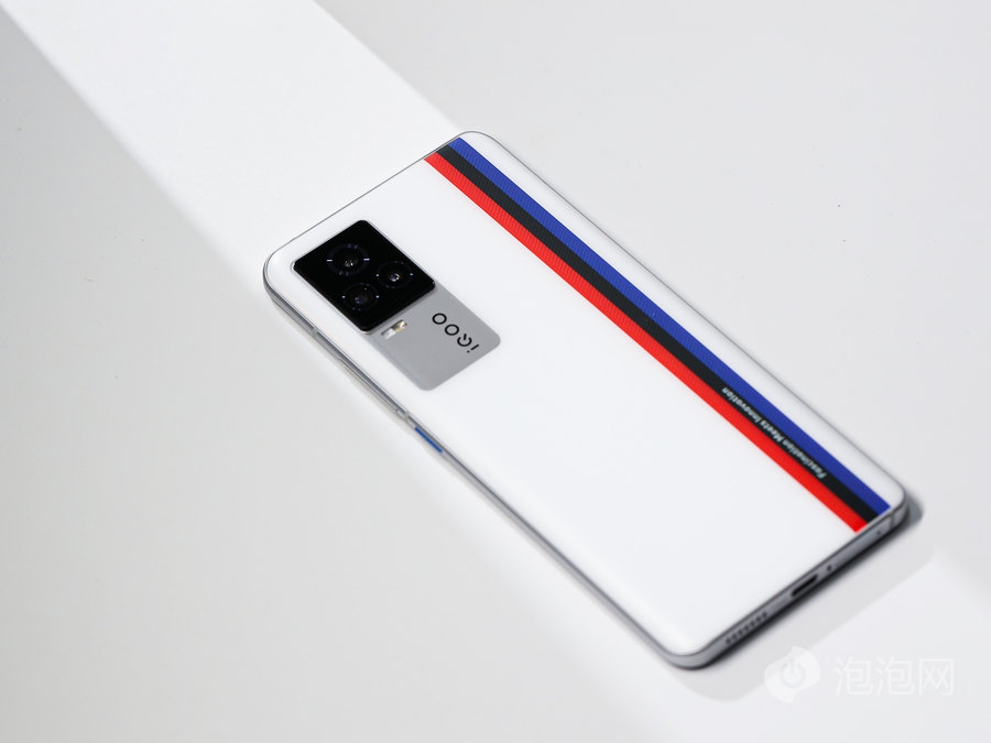 当我们细看红、黑、蓝三条色带时会发现,iQOO 7 传奇版的背部三条色带更加立体,同时三色纹理增加了动态跑光的视觉效果。