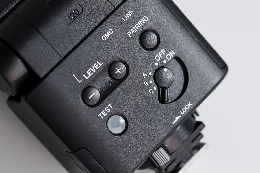 由于体型尺寸的限制,所以闪灯上没有设计显示屏幕,但可直接通过相机菜单来查看信息以及设置的闪光灯功能。不过索尼HVL-F28RM操作十分简单直观,可方便地控制包括+/-闪光输出按键(LEVEL)、配对按键(PAIRING)、闪光测试按键(TEST)和锁定杆(LOCK)等。
