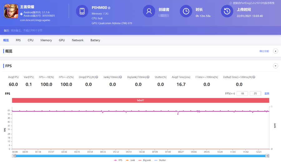 此次测试的《王者荣耀》刚好经过了大版本更新,测试基于最新版本,画面设置为特效全开。软件记录到的平均帧数为60帧,游戏全程波动都极低,画面稳定流畅,操作响应迅速,OPPO A93畅玩这类型的游戏轻松无压力。