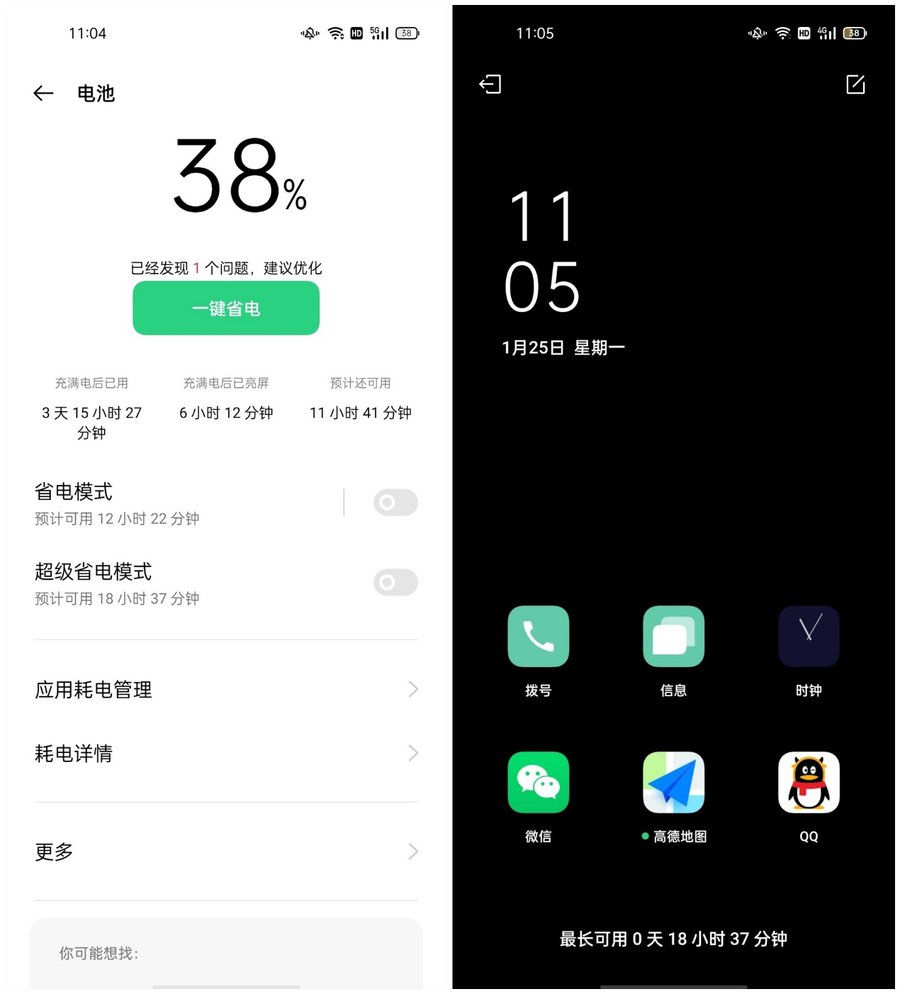 值得一提的是,OPPO A93还支持超级省电模式。在该模式下,系统会限制应用的运行等,从而有效延长续航时间。当你出门手机没电时,可以开启该模式获得更长的续航,避免没电带来的麻烦。