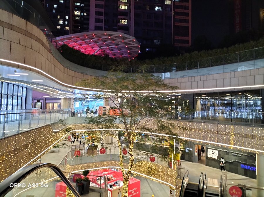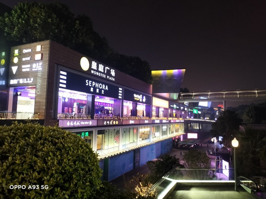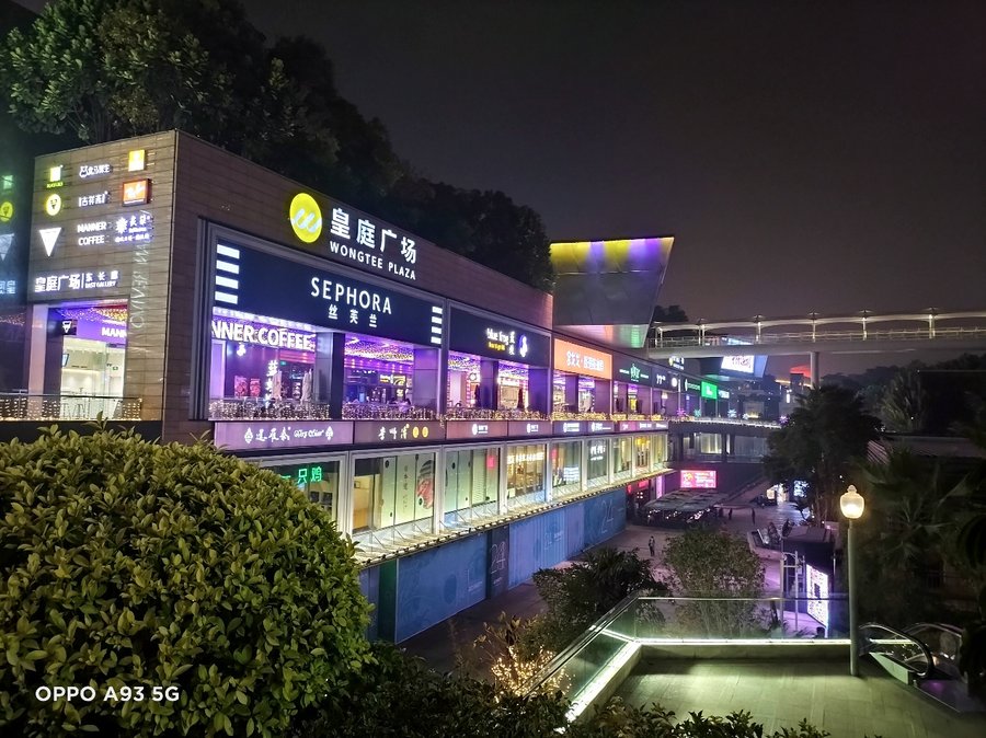在夜景模式下,可以看到OPPO A93的样张更加通透,灯箱等高光部分压制更到位,可以保留下更多的细节,整体观感有比较明显的提升。同时,A93在夜景模式下的拍照成像速度也很快,等待时间较短,能够带来更好的拍照体验。