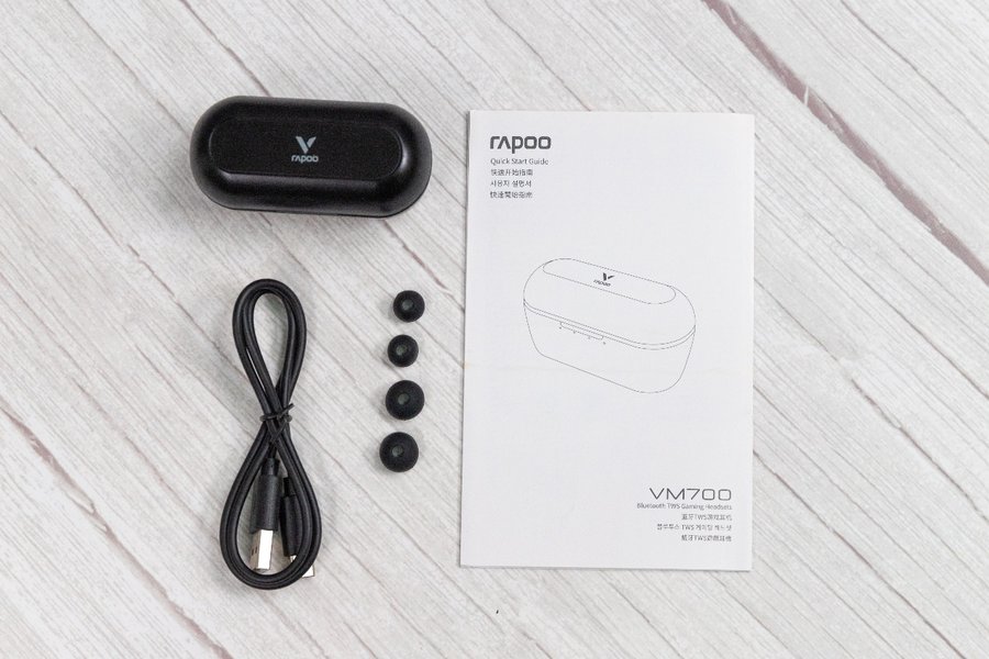 包装盒内包括VM700游戏耳机、说明书、Type-C充电以及两副硅胶塞。