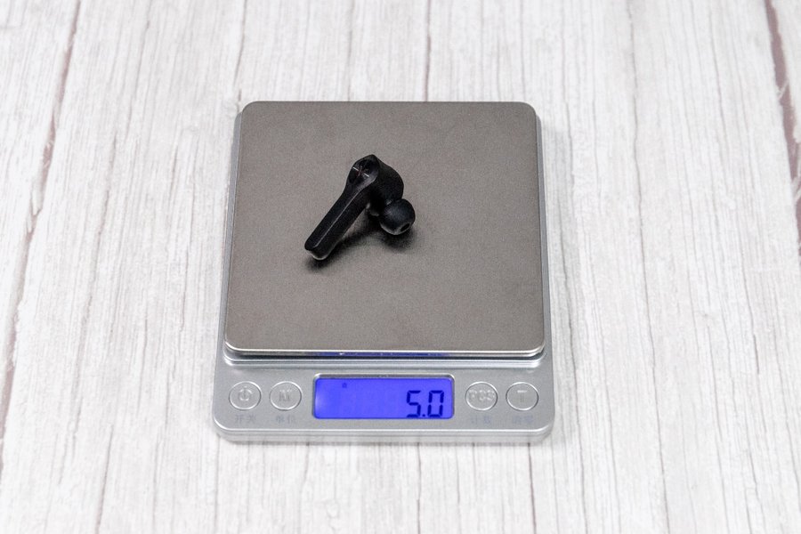 重量方面,实测单耳重量为5g克,佩戴压力不大,连充电盒共重55.7克。