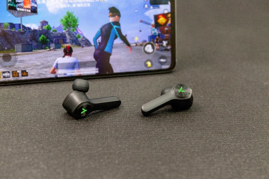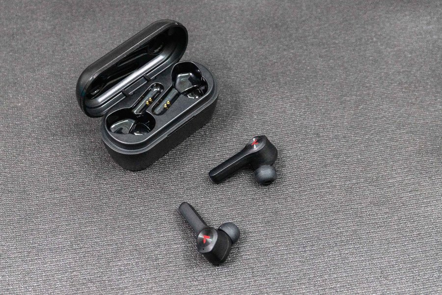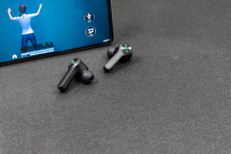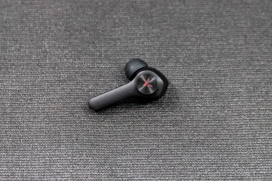 耳机本体采用采用入耳式设计,耳机内置50mAh电池,外侧为两个“V”字的RGB灯,这在真无线耳机中比较罕见,并且这里还是耳机的触控交互区域,周围有同心圆纹理,方便佩戴时辨认。