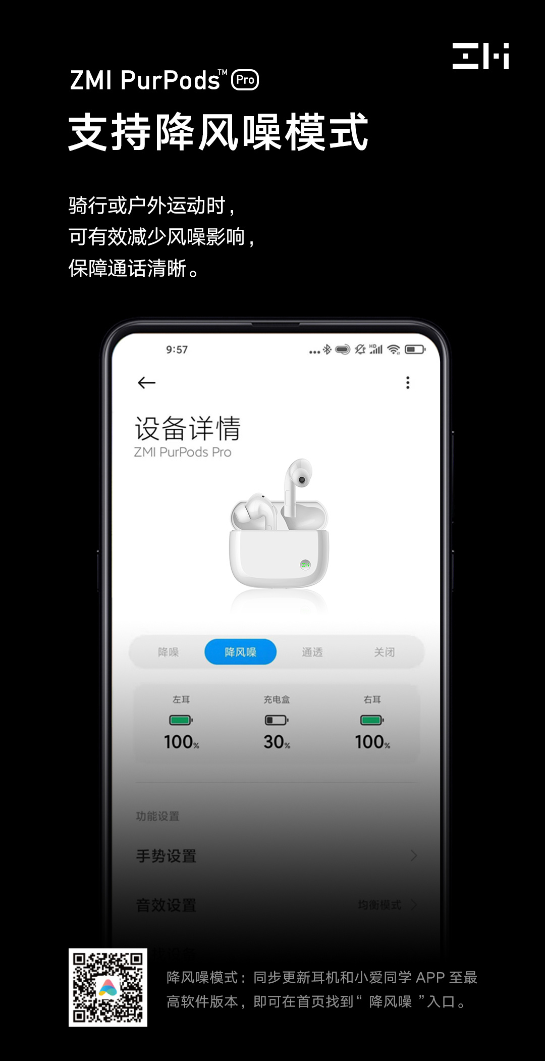 紫米官方宣布,紫米PurPods Pro真无线蓝牙耳机已经支持降风噪模式。长按识别二维码 进入泡泡网查看全文