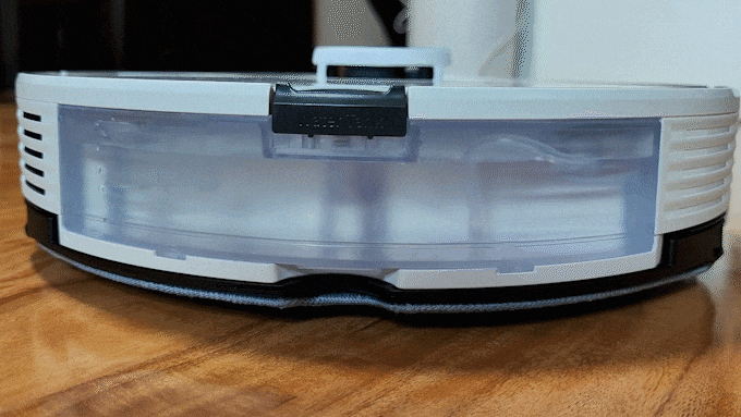 当石头扫拖机器人T7 Plus遇到门槛或者轮子打滑时,也可以通过升起水箱支架来进行脱困,帮助提升扫拖机器人的拖轮能力。