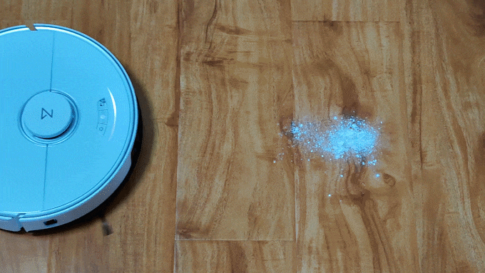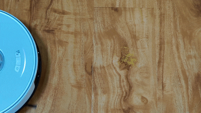 我们又放了一些面粉在地面上,面粉不但轻,而且属于粉尘类,清理起来更加困难。不过石头扫拖机器人T7 Plus依然能够一次将这些面粉全部清理干净。