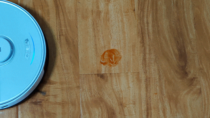 拖地功能的升级是此次石头扫拖机器人T7 Plus的一大亮点,因此我们也针对石头扫拖机器人T7 Plus的拖地进行了测试,使用酱油以及番茄酱作为污渍涂在地面,看一下石头扫拖机器人T7 Plus是否能够将这些污渍清理干净。