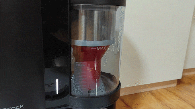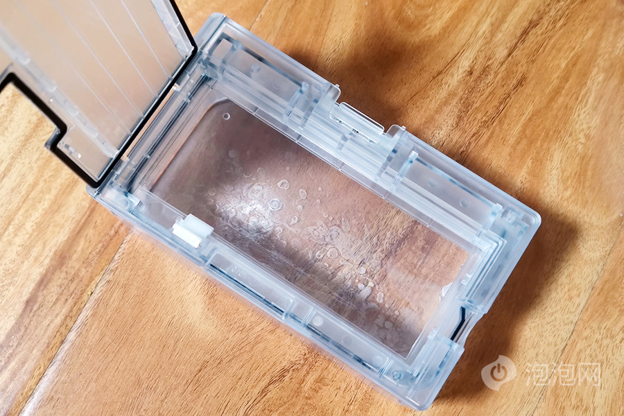 自动集尘后,尘盒内的灰尘消息,只留下一些面粉的痕迹,自动集尘的效果是非常出色的。