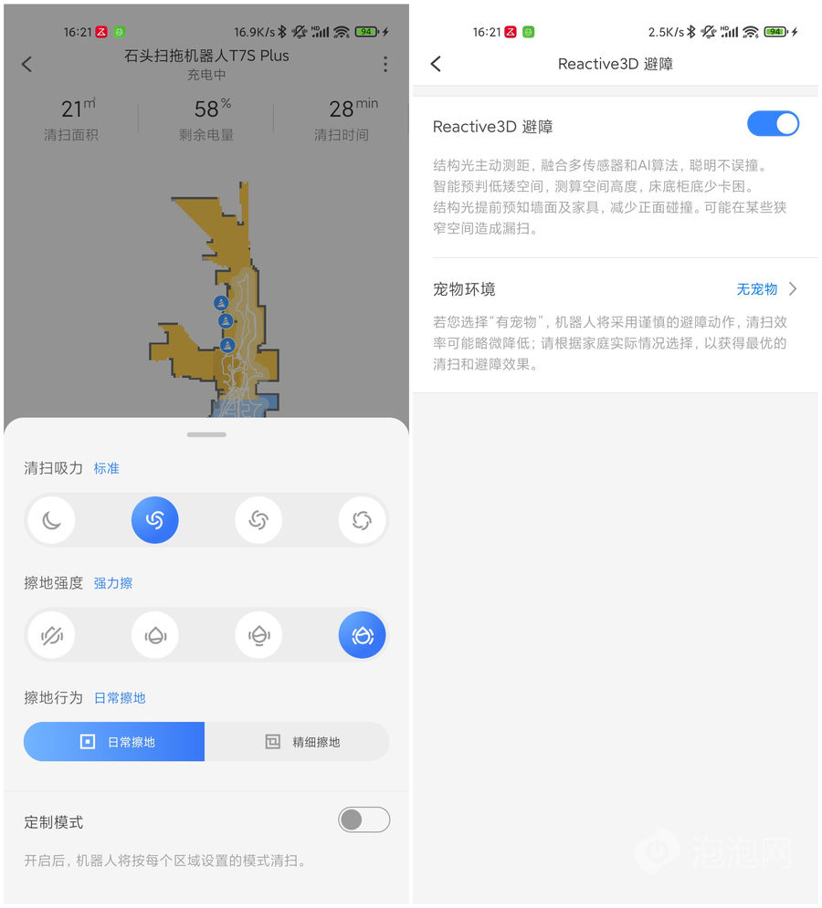 石头扫拖机器人T7 Plus采用了全新的RR mason 8.0 3D 算法,针对建图、路径规划以及脱困都进行了升级,清扫过程中扫拖机器人变得更加智能,当扫拖机器人检测到障碍物时,也会在地图上进行标注。