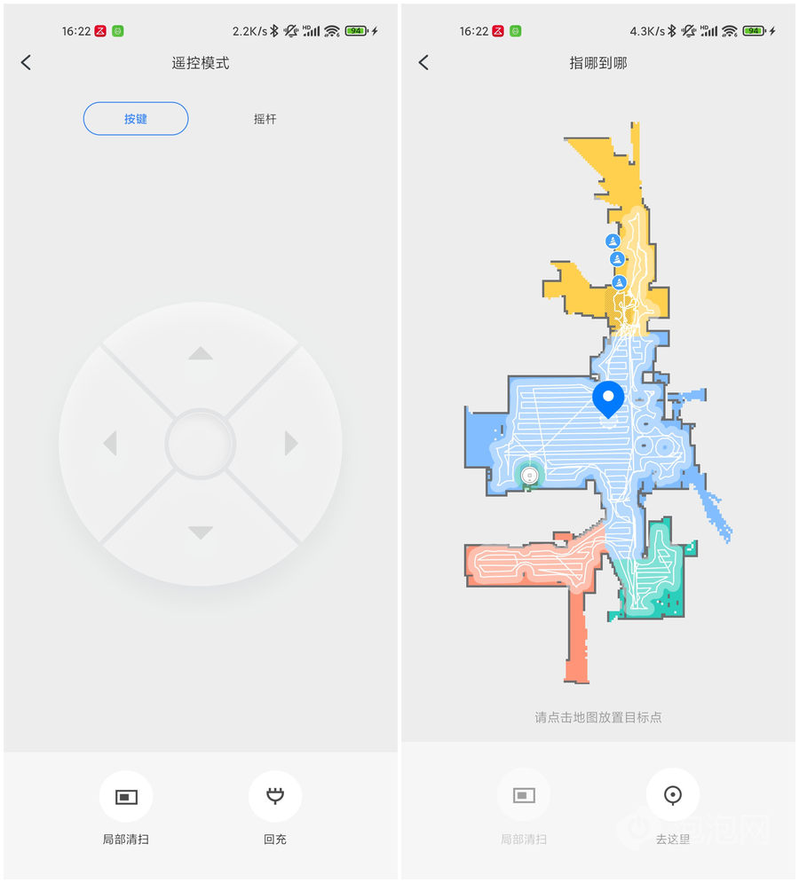 也可以通过APP遥控扫拖机器人,进行定点清扫。