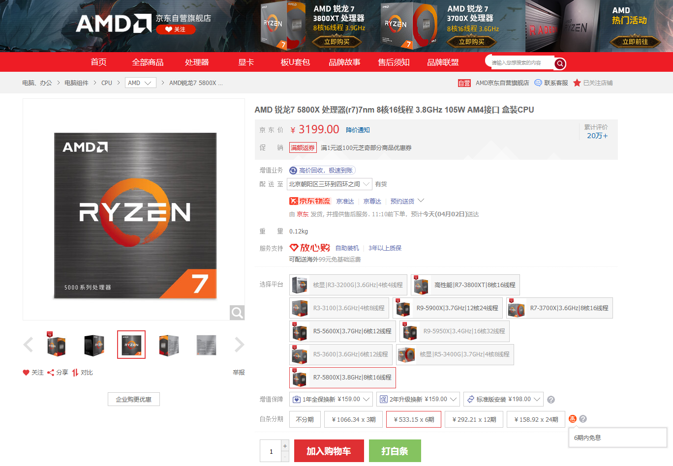 目前,AMD锐龙7 5800X处理器在京东商城自营旗舰店的售价为3199元,同时白条六期免息限时优惠中,对于那些想第一时间和好友畅玩《双人成行》的玩家朋友们可以有效节省资金把整机攒起来,赶快前往下放链接抢购吧。